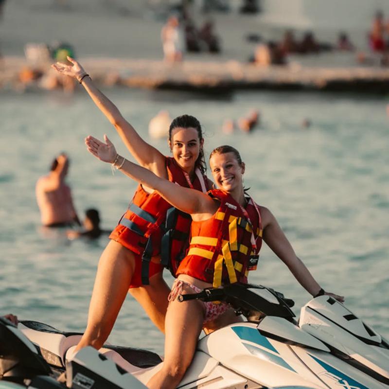 Samen met 1 van je vrienden de wateren van Albufeira onveilig maken, dat kan tijdens het jetskiën. Een halfuur lang zal je gaan varen, jij eerst een kwartier en daarna wissel je af met degene die eerst achterop zit. Meerprijs: 98 euro voor 2 personen.