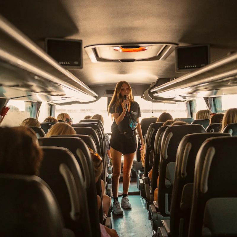 Je kan vertrekken naar de Costa Brava met de bus. op maandag- of vrijdagavond. Je reist in een moderne bus met verstelbare stoelen, airco en toilet. Maaltijden en drinken zitten tijdens je reis niet inbegrepen, maar je hebt wel de mogelijkheid om in de bus drankjes te kopen. Vertrekken in de namiddag; aankomen in de ochtend. We zijn in de bus ongeveer 18 uur onderweg, maar geen zorgen: de bus is comfortabel en je kan er slapen, ontspannen of alvast kennismaken met de rest van de groep.