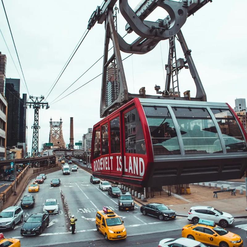 De kabelbaan van bijna een kilometer vervoert je van Manhattan naar Roosevelt Island, met een uniek uitzicht over de skyline van New York op 76 meter hoogte. Je kan al mee met de kabelbaan voor 3 euro.
